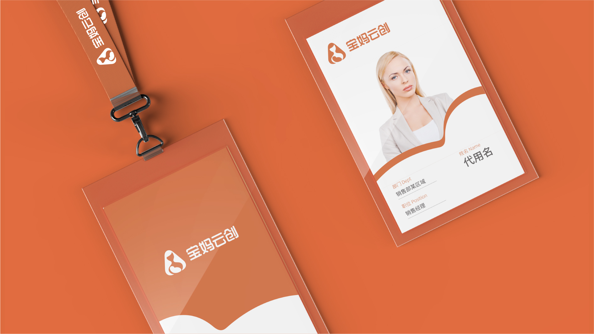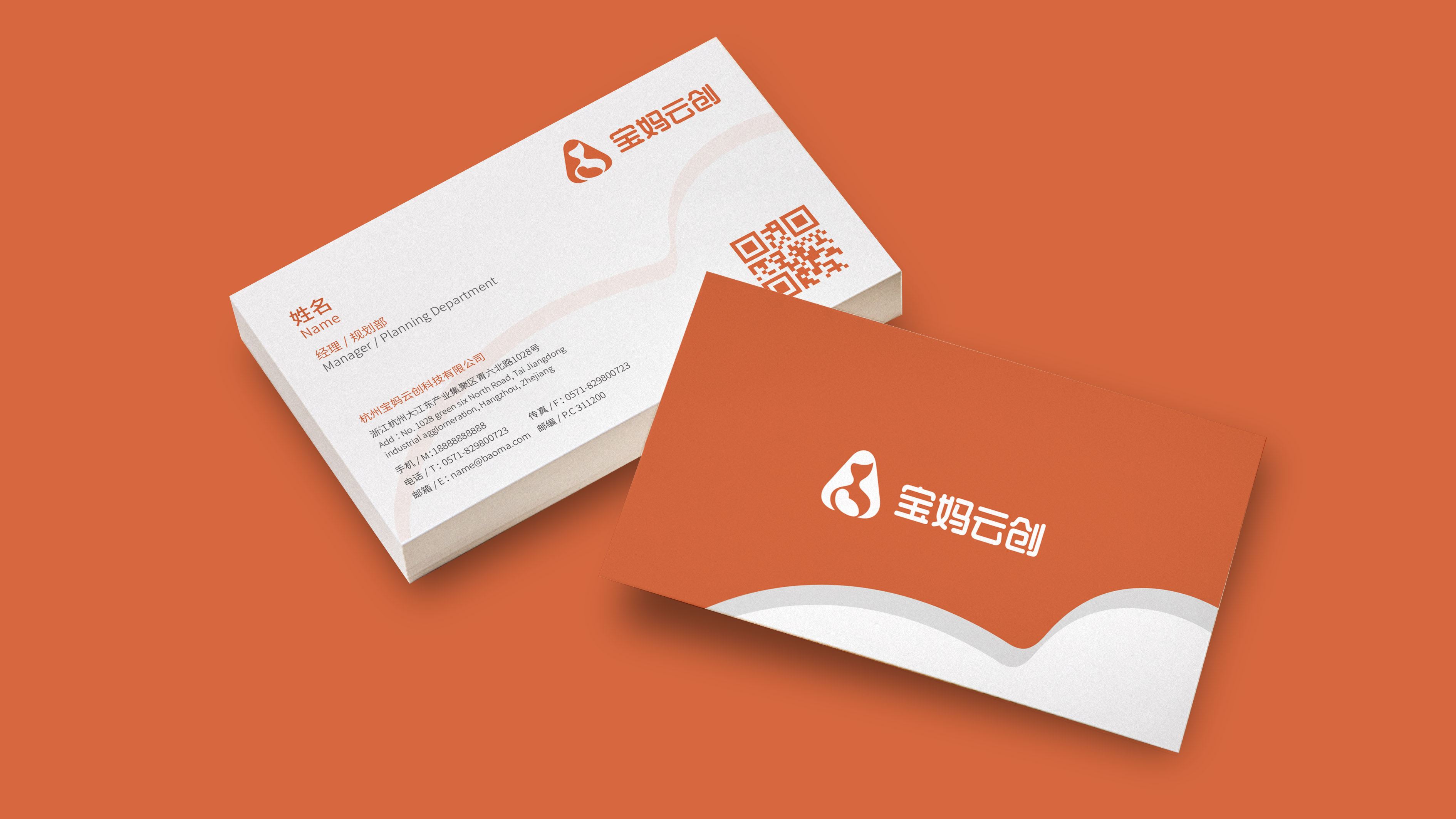 和與德根據寶媽云創的企業價值觀、品牌氣質和品牌內涵,選擇橙色為標準色彩,象征了生命的活力,對事業的熱情,展現辣媽生命的光彩。標志以成熟優雅的媽咪形象為主體,雙手擁抱著寶貝,給人以溫暖、自信的品牌形象,寶貝的造型猶如元寶,巧妙的展現女性依靠寶媽云創平臺獲得成功和財富的自信形象。而三角形本身凸顯獨立、堅強、自信的含義,圓潤的三角,更加溫和親近,彰顯寶媽的偉大形象。