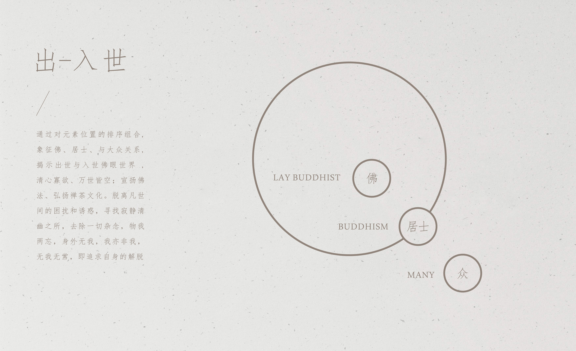 和與德通過走訪調(diào)研,提煉出出世與入世、禪茶一味等元素,為上海禪茶學(xué)會設(shè)計品牌LOGO,體現(xiàn)禪與茶兩種文化的相互滲透相互影響,弘揚禪茶文化,茶能謂道,禪也謂境界;通過對元素位置的排序組合,揭示出世與入世佛眼世界,清心寡欲、萬世皆空,體現(xiàn)出脫離凡世間的困擾和誘惑,尋找寂靜清幽之所,去除一切雜念,物我兩忘,身外無我,我亦非我,無我無常的境界。
